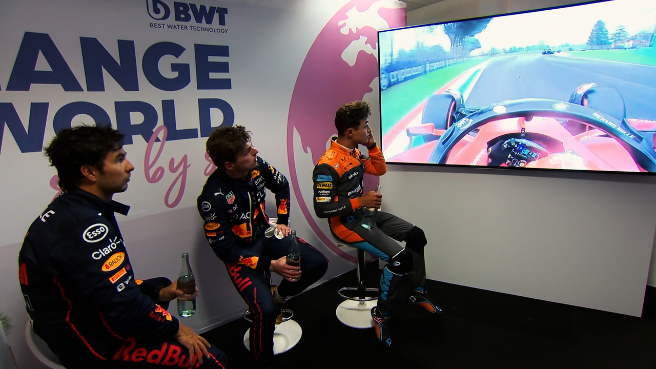 | Sergio Perez, Max Verstappen, and Lando Norris dissecting and overanalyzing Leclerc's crash |